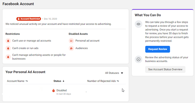 个人广告账户受限: